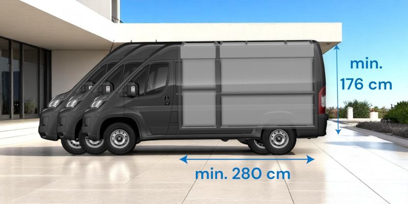 Изисква ван L2H2 или по-голям, с размери за товарене: врата 175 см и дължина 280 см.