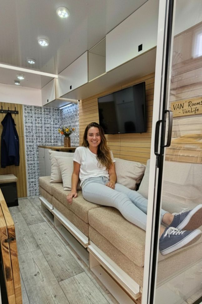 Ако имате по-дълъг ван, можете да разширите пространството с още 80 см с празен модул между кухнята и спалнята.